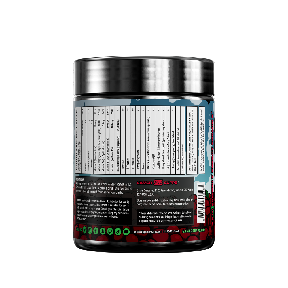 GG is the ultimate energy and focus formula designed to Level Up Your Gaming. The highest quality ingredients make up an energy formula that mixes completely and provides a healthier and more cost effective energy drink.
